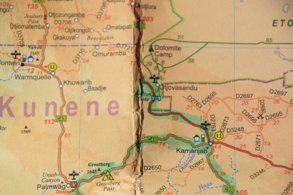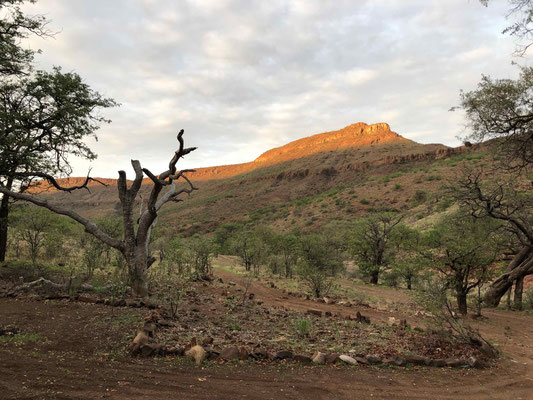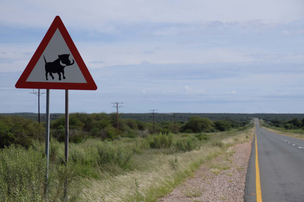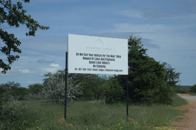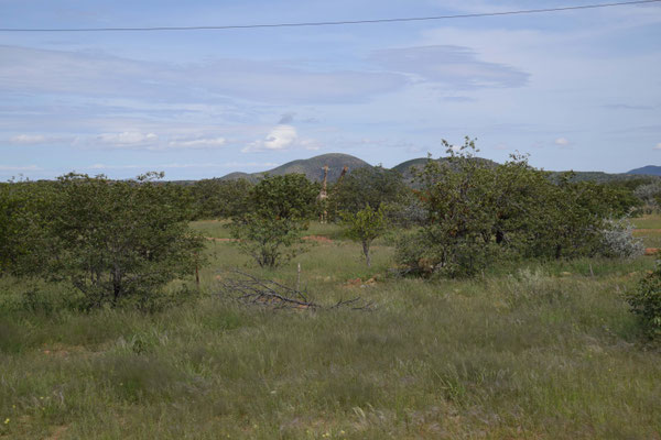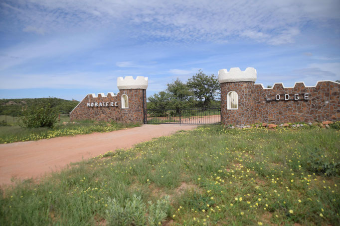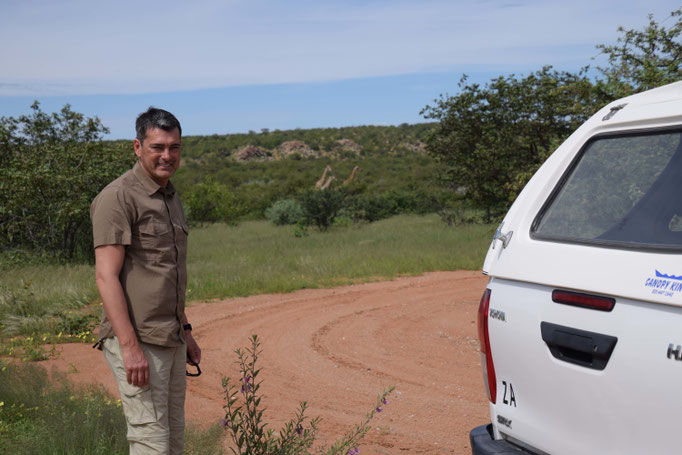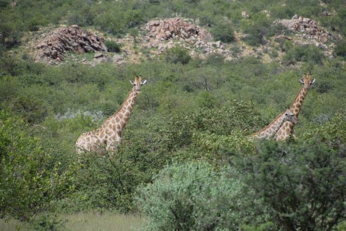 Nach einem ausgiebigen Frühstück im Camp, machen wir uns auf den gut 2,5 stündigen Weg zur Schwester Lodge, der Hobatere Lodge. Auf dem Weg dahin werden wir immer wieder von den Tieren überrascht, wie z.B. den Giraffen direkt an der Straße.