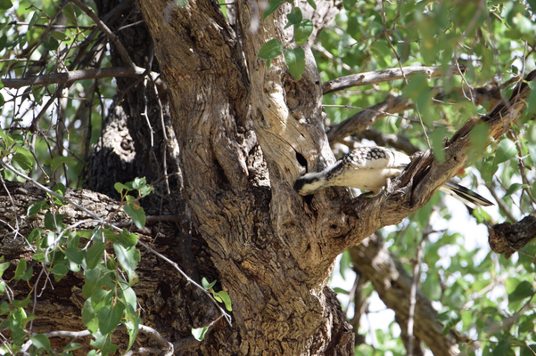 Genügsamer waren da die Horn Bill Vögel. Sie hölen im Baum ein Nest aus, in dem das Weibchen die Eier legt. Sie zupft sich für den Nestbau ihr gesamtes Gefieder aus und lässt sich vom