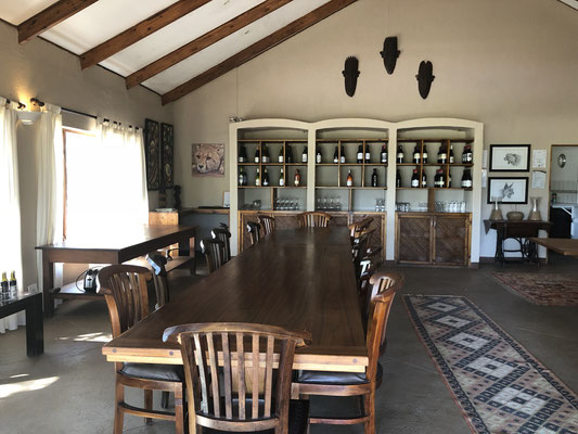 Am Abend luden die Besitzer der Waterberg Guestfarm Harry und Sonja zum gemeinsamen Essen im Restaurant, dem Herz der Anlage ein, zuvor wurde am Lagerfeuer mit Getränken zum Kennenlernen gestartet und jedem Abend treffen sich alle Gäste zum gemeinsamen Essen am großen Tisch. Eine schöne Tradition, so hört man auch gleich, wie der Tag der anderen Gäste so verlaufen ist.