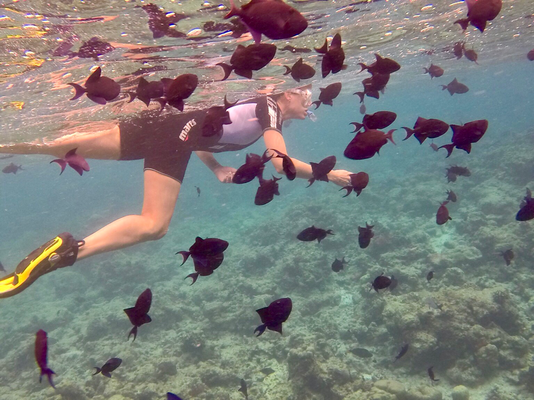 Die bunte Welt unter Wasser ist schon sehr verlockend. Man muss echt aufpassen, dass man auch wieder aus dem Wasser geht bevor die Haut überall ganz schrumpelig ist. Außerdem knallt die Sonne