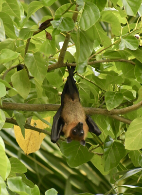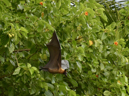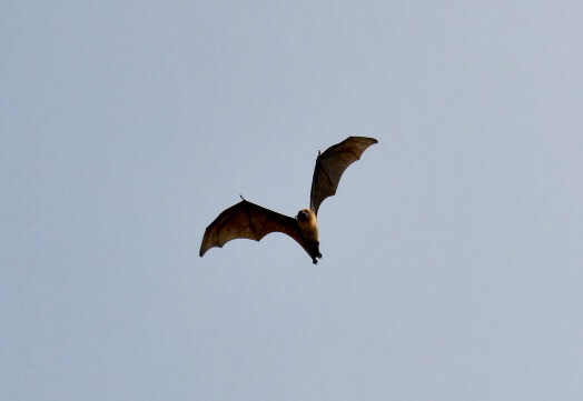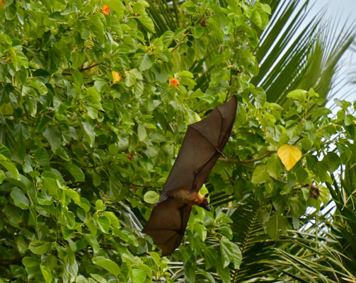 Wie war das mit den Hunden? Ja, die fliegen hier wirklich rum. Die Flughunde sind auf der ganzen Insel und haben teilweise eine Spannweite von über 4 Meter. Wir haben etwas kleinere mit ca. 1,5m