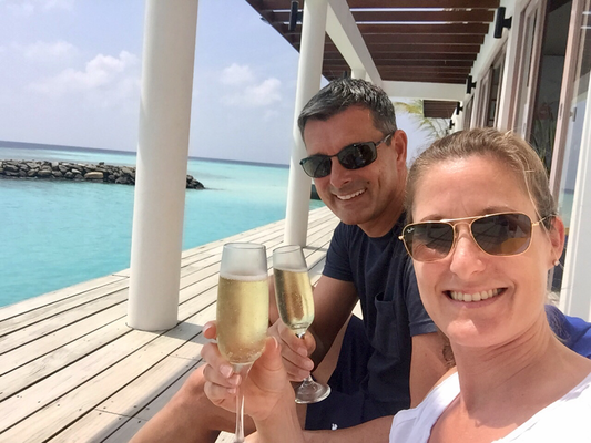 uns mit einem leckeren Prosecco. Schließlich ist ja immer noch Urlaub!