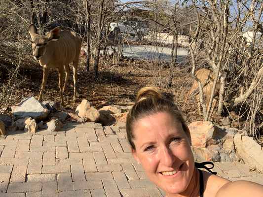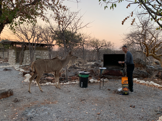 Die Kudus gehören hier mit zum Inventar und haben uns beim Grillen ganz schön auf Trab gehalten. Trotzdem war es lecker!