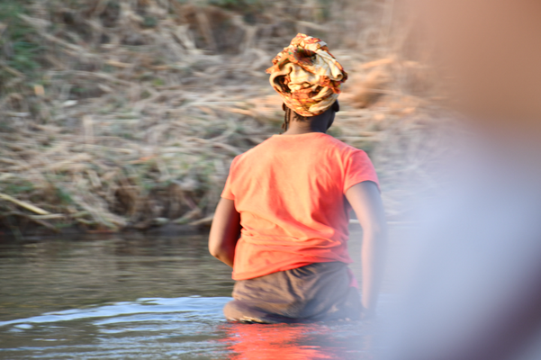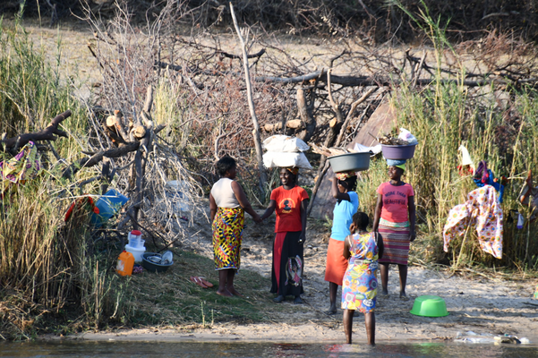 Erlebnis. Der Fluss ist gleichzeitig die Grenze zwischen Angola und Namibia. Da etwa 3 Meter Wasser fehlen, können die Frauen durchwaten!