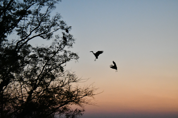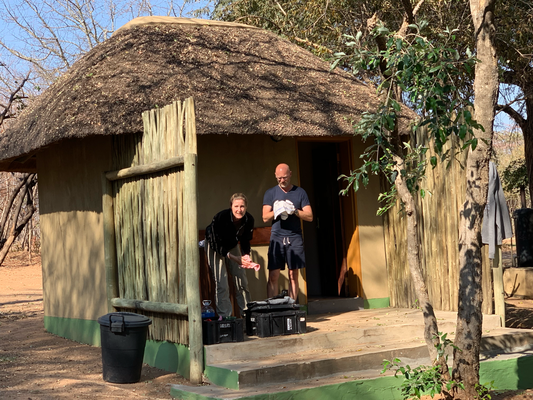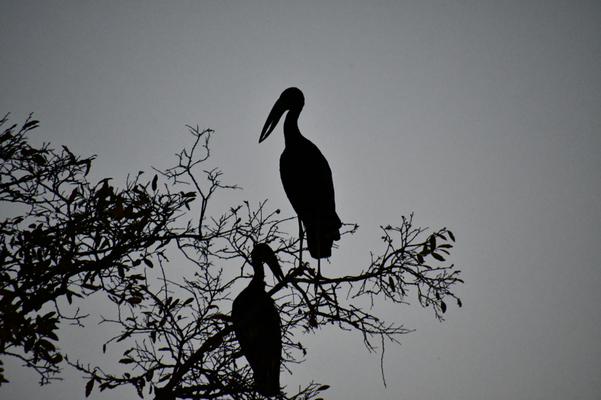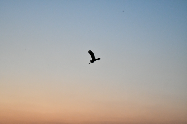 Passend zum Sonnenuntergang stehen die Zelte und wir sitzen in der Lodge mit herrlichem Blick! Dann erfreut uns noch ein „schwarzer Storch“, so zumindest Esthers Interpretation. Als es dann aber eher
