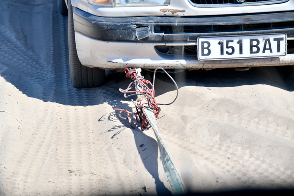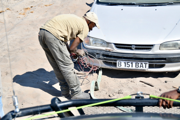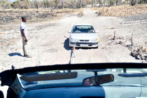 Auf dem Rückweg haben wir noch ein Auto aus dem tiefen Sand gezogen. Frei nach den Pfadfinder: Jeden Tag eine gute Tat! oder „let me give him a hand“ in Afrika !
