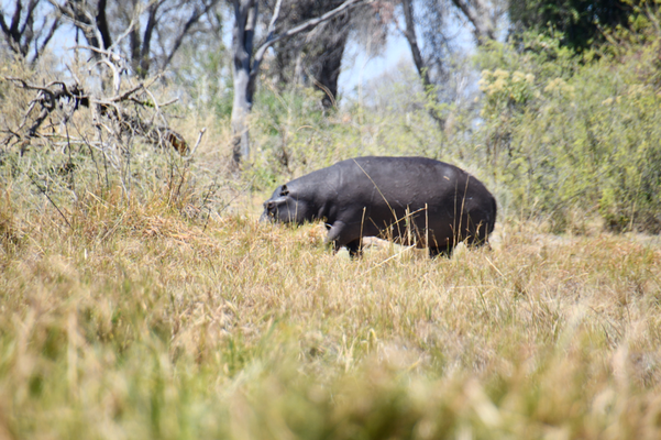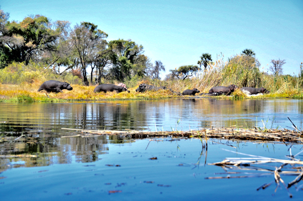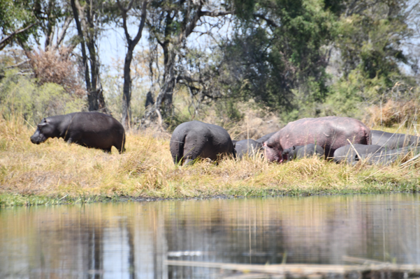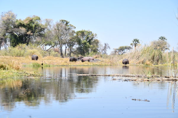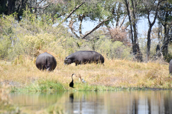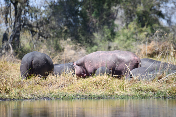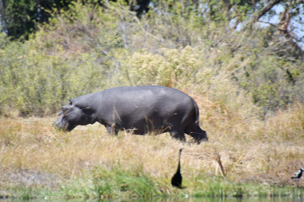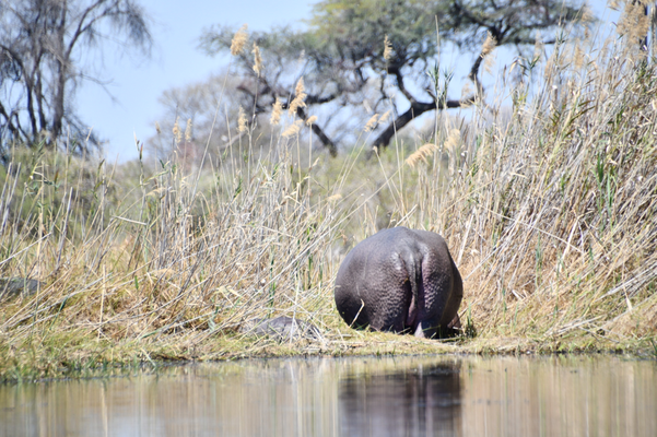 Da sich das Wasser hierhin zurückgezogen hat, sind natürlich auch alle Tiere mitgezogen. Das erklärt die unglaubliche Dichte an Hippos. Tolle Tiere die durch das tiefe Röhren miteinander