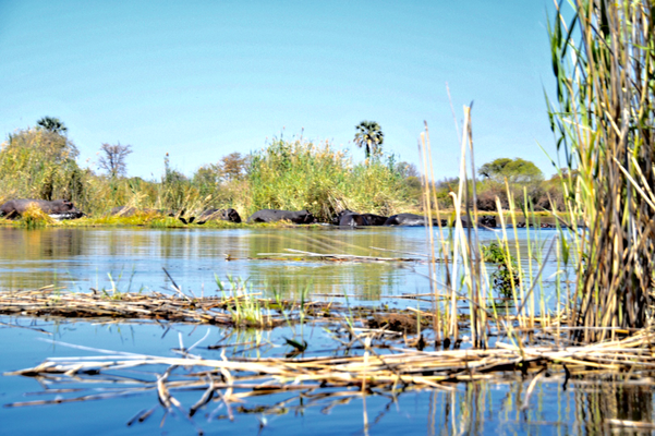 sich über das Schilfgras hermachen und es genüsslich mampfen. Kurze Schnappatmung hatten sowohl Andrea und Eric die die Hippos von Land aus in Panik losrennen sahen, als auch wir die im Wasser waren