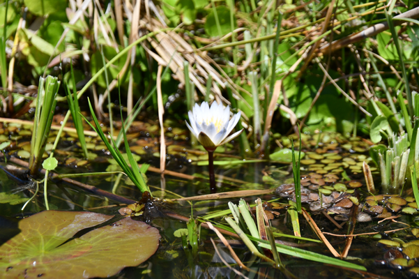 kommunizieren. Durch das teilweise sehr dichte Schilf werden wir auf eine riesige Insel gebracht. Hier machen wir unseren ersten Game Walk. Schon ein aufregendes Erlebnis so ganz ohne schützendes