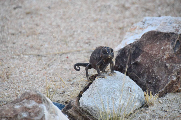Und zu unserer Überraschung haben wir auch ein Chamäleon gesehen. Laut Benny haben wir damit heute viel Glück zu erwarten…das haben wir ja eh schon, denn wir sind hier in Namibia!