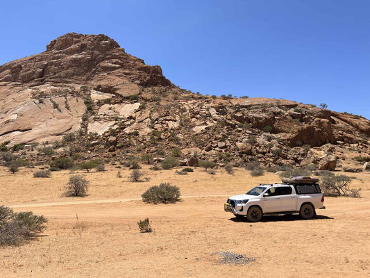 Nach einem fantastischen Frühstück (Brot mit Avocadocreme und pochiertem Ei…mmmh!) verlassen wir ganz entspannt die Hauptstadt in Richtung Spitzkoppe. Wir sind schon mega gespannt auf die Lodge.