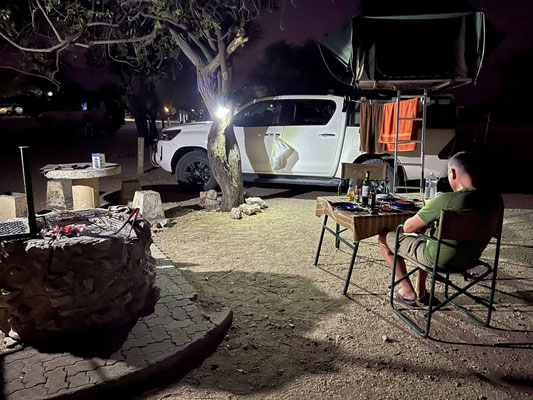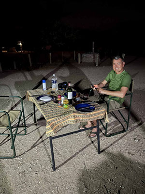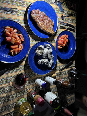 WOW... nach diesem Erlebnis haben wir genug und bauen unser Zelt auf, schmeißen den Grill an und gönnen uns, nach dem Malocherbierchen, ein schönes Glas Wein!