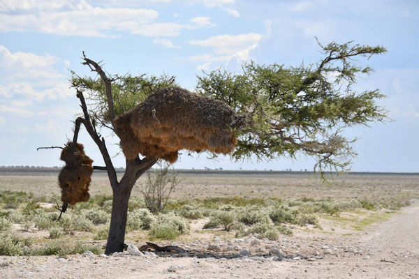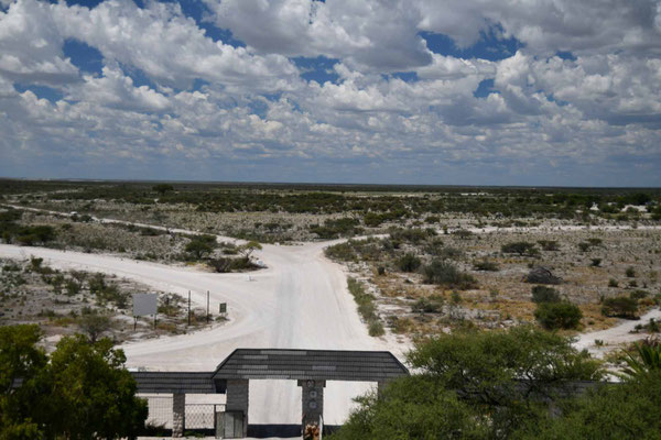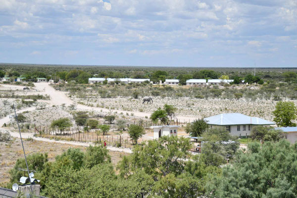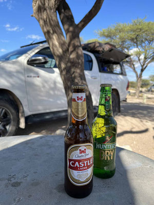 Im Etosha angekommen, holen wir uns schnell ein "alkoholfreies" Bierchen und sind auf dem Weg zum Turm, das Wahrzeichen von Okaukuejo.