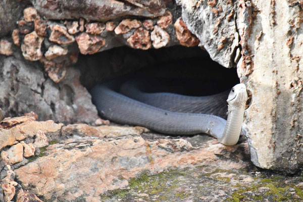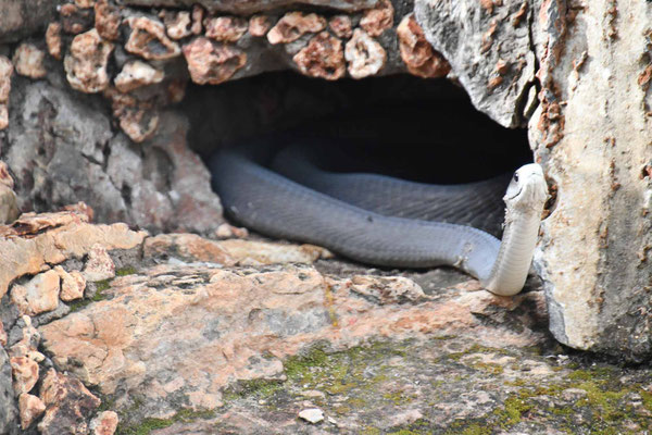 Nach der Massage haben wir den Lodge-eigenen Reptilienpark besucht. Auch hier sind wir wieder sehr freundlich und mit Begeisterung vom Verantwortlichen durchgeführt worden. Jedes Tier wurde toll beschrieben, so dass wir auch hier eine Menge lernen konnten. Wir haben sogar eine Black Mamba gesehen. Gott sei Dank nur hier im Park, denn es handelt sich um die gefährlichste Schlangenart, die es hier gibt. Sie ist die einzige Schlange die jagd, also ihrer Beute folgt und deren Biss tödlich ist. Entgegen unserer Erwartung ist die Schlange sehr hell und verdankt ihren Namen den tiefschwarzen Rachen. Öffnet sie das Maul, wird einem echt etwas anders!
