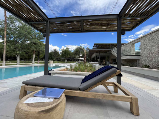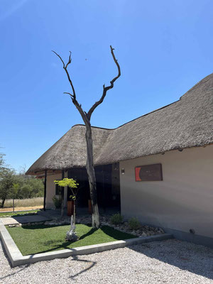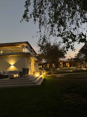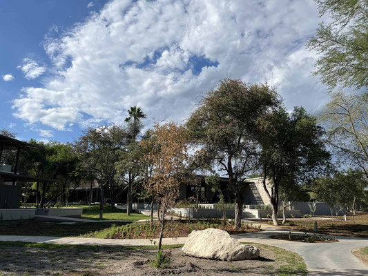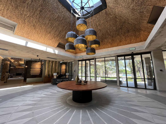 Nun aber mal zur Lodge. Die Hauptgebäude sind gerade fertig geworden, die Gartenarbeiten im vollen Gange und Wohngebäude frisch renoviert. Die Anlage hat von 10 Tagen erst eröffnet und das „Obacht!“ 3 Monate früher als geplant. Sind halt dann doch deutscher als wir Deutschen. Die Anlage ist mega modern. Im Detail sind aber immer wieder traditionelle Elemente verarbeitet. Man fühlt sich hier direkt sehr wohl und kann diesen unerwarteten Luxus einfach nur genießen.