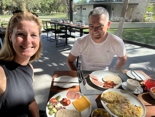Nach einem unfassbaren Frühstück nutzen wir die Internetverbindung, um ein paar Tage im Blog nachzuholen. Um 11 Uhr dann eine entspannende Massage und dann ist ja auch schon Lunch Zeit. Das Personal hat uns auch hier überrascht. Neben der Tatsache, dass sie mega freundlich sind, sprechen sie alle mindestens 3 Sprachen. Englisch, Afrikaans und ihre eigene Sprache der Community.