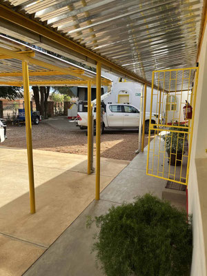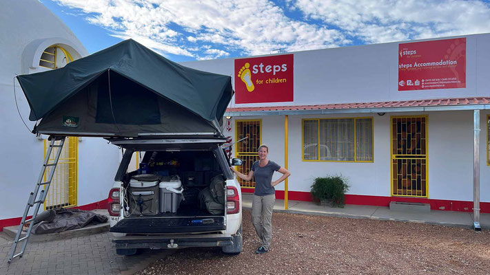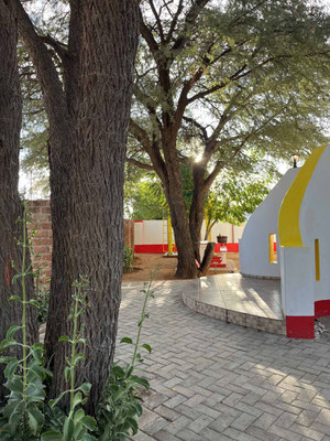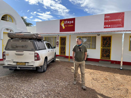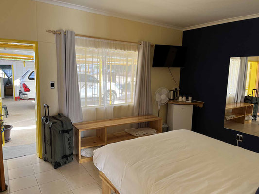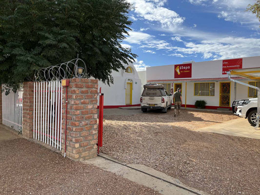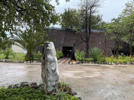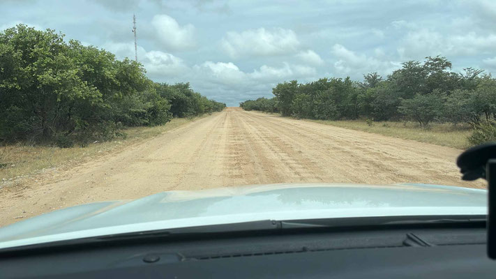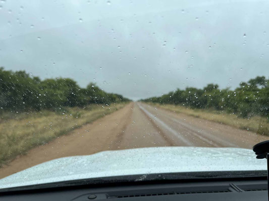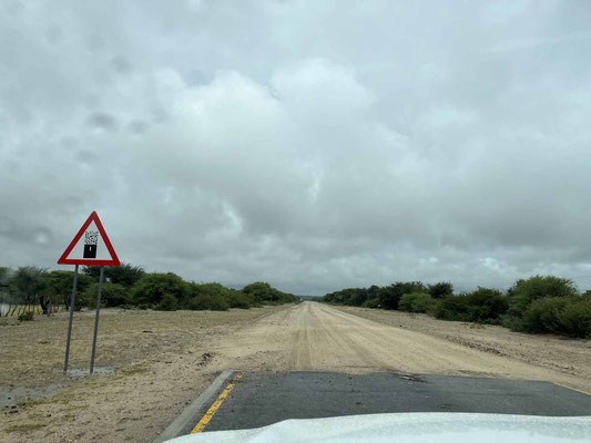 Die ganze Nacht hat es wie aus Kübeln geschüttet. Das hat dann auch das Zelt nicht mehr ausgehalten und war durchnässt. In Namibia hat niemand mehr damit gerechnet, dass es doch noch Regen gibt. So freuen sich hier alle wie Bolle und wir müssen leider Botswana verschieben. Die Wege dort sind trocken schon schwer befahrbar. Der weiche Sand hat seine Tücken. Im Schlamm macht das gar keinen Sinn. Und daran dass es Schlamm wird, lässt der Wetterbericht der kommenden Tage keinen Zweifel. Also die Wetterkarte in Namibia studiert und festgestellt, dass es in der Kalahari Wüste nicht regnet. Jan hat uns in der Lodge noch ein leckeres Frühstück gezaubert und dann haben wir das nasse Zelt verpackt und sind los in Richtung Gobabis. Sind ja nur 485km auf Schotter und Sandpisten!